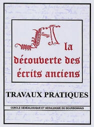 Depuis 2006, le C.G.H.B. propose pour 18€ + 7€ de frais d'envoi sa brochure de 180 pages d'initiation à la lecture d'actes anciens tirés des registres paroissiaux, des registres d'éat civil mais aussi des minutes notariales et d'autres sources principalement bourbonnaises... Cet outil est excellent pour démarrer en généalogie en s'accoutumant à lire chaque écrit jusqu'au bout afin d'en extraire tout ce qui est intéressant... Ce travail a été réalisé par Jacky Popy, Michel Labonne et Anne-Marie Méténier, tous les trois, membres de notre association, et préfacé par Mr Tranchard, directeur des Archives Départementales de l'Allier, et Mr de Lajudie, ancien président du cercle.